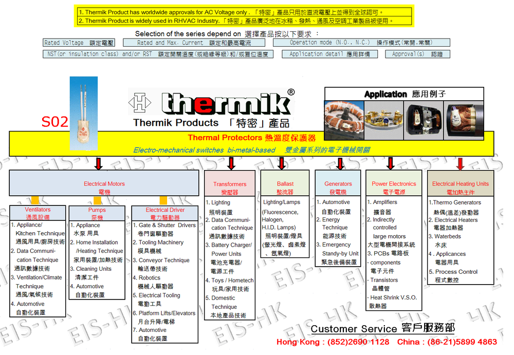 | Automatic resetting, without base insulation for high performance with connection leads |